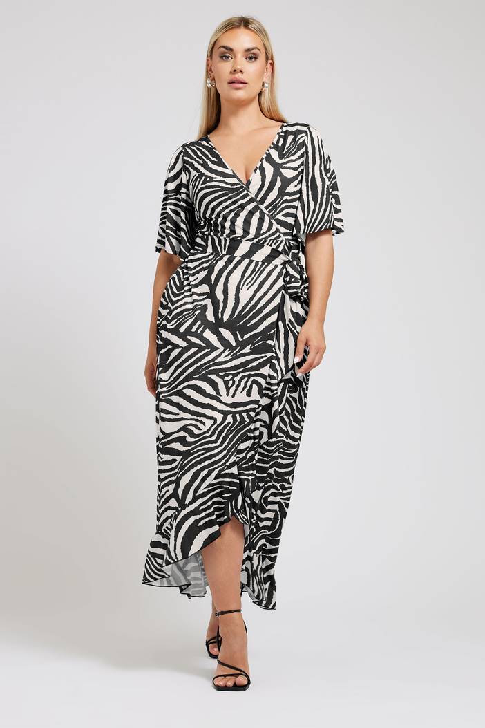 Wikkeljurk Met Zebraprint En Ruchedetail In Wit, Dames Curve & Grote Maten Kleding, Yours London