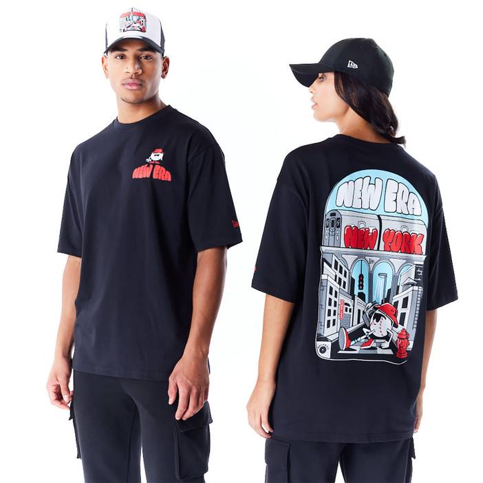New Era City Graphic New York Oversized T-Shirt New Era wordmark graphic on left chest New Era New York wordmark graphic on rear New Era Flag embroidered on left sleeve Oversized fit Unisex product Male model is 6ft 1in tall and wears a size Medium Female model is 5ft 8in tall and wears a size Medium 70% COTTON, 20% RECYCLED COTTON, 7% COTTON, 3% ELASTANE Product ID: 60564865