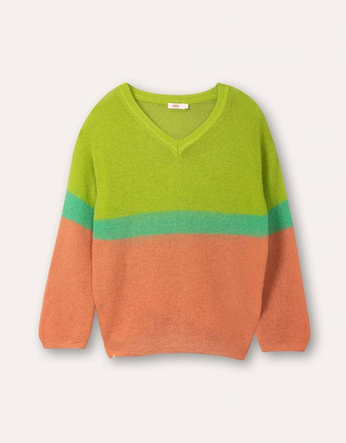 Easy, breezy gebreide trui die zacht, luchtig en heerlijk draagt. Met V-hals, driekwartsmouwen en een prachtig colourblock design. Het perfecte item om elke outfit net dat beetje extra te geven als gaat om warmte, stijl en kleur. Om de vorm goed te houden, raden we aan deze trui altijd in je kast te leggen en niet op te hangen. - Normal fit - Driekwartsmouwen - Mix van o.a. mohair en wol