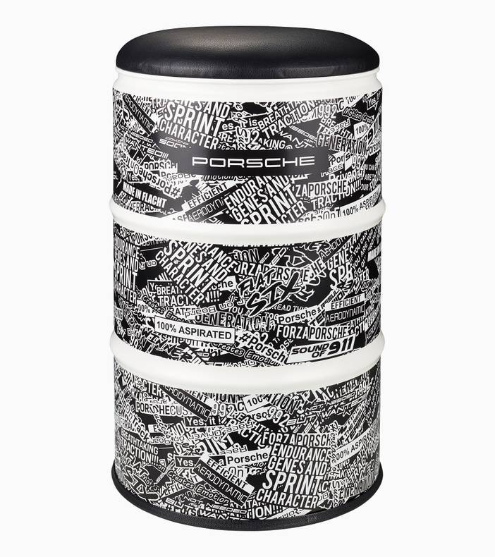 Nehmen Sie Platz – und spüren Sie die Rennstrecke: Aus einem echten Ölfass wird ein einzigartiges Möbelstück für alle Rennsport-, Porsche- und Design-Fans. Die hochwertige Folierung inspiriert von der Tarnlivery des Porsche 911 GT3 R ist wasser- und wetterfest, wodurch das Fass für innen wie außen geeignet ist. Die gepolsterte Sitzfläche garantiert überall Porsche-typischen Komfort.DETAILS:Hochwertig veredeltes Ölfass.Komfortabel gepolsterte Sitzfläche.Wasser- und wetterfest, für den Innen- und Außenbereich.Inspiriert von der Tarnlivery des Porsche 911 GT3 R.Made in Germany.