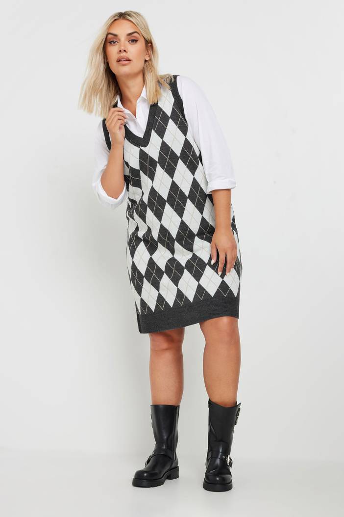 Mouwloze Jurk Met Ruitontwerp In Zwart/Wit, Dames Curve & Grote Maten Kleding, Limited Collection