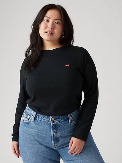 Essential Langarm T Shirt (Plus Größe) - Schwarz / Schwarz