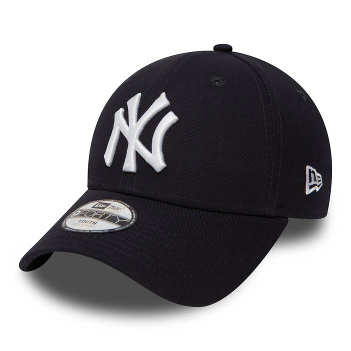 Official New Era New York Yankees Essential Kids Navy 9FORTY Cap 9FORTY Adjustable Crown Curved visor Embroidered New Era flag to the left 100% Cotton Woven Product ID: 10877283