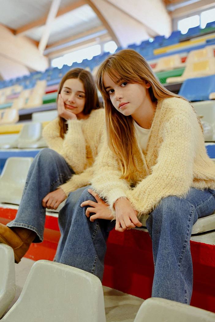 Gilet torsadé en grosse maille tiedye, Manches longues, Encolure V, Poches plaquées sur les côtés devant, Fermeture par boutons sur le milieu devant, Boutons nacrés, Longueur depuis l'épaule 50 cm (pour un 12 ans)