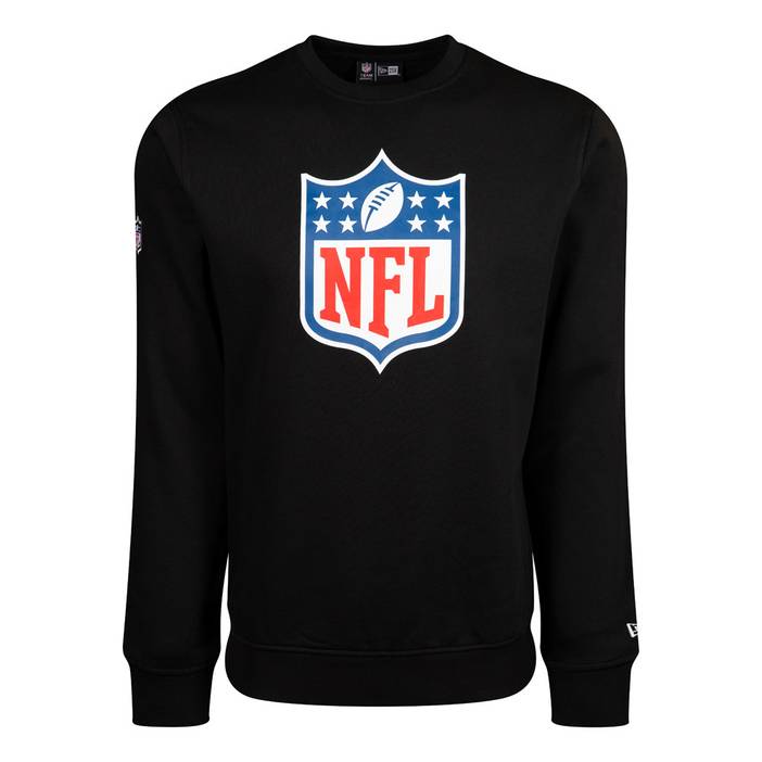 Layer up with style this winter with the New Era NFL Crew Neck Sweatshirt. Featuring a brushed fleece on the inside and an NFL logo sticker pigment print graphic printed with waterbase ink to the front. There is a New Era flag embroidery on the left cuff and NFL logo at right arm. NFL Logo Black Crew Neck Officially licensed NFL gear Crew Neckline NFL Logo to the front 80% Cotton / 20% Polyester Product ID: 11073813