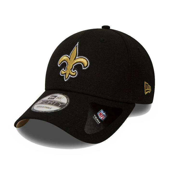 One of the most stylish logos in the league, the New Orleans Saints’ fleur de lis looks even better embroidered in gold on this team black replica on-field cap. Official New Orleans Saints' logo embroidered in gold to the front Fully adjustable 9FORTY profile 100% woven polyester Contoured crown Contrast gold undervisor New Era flag embroidered to the left hand side Product ID: 10517876