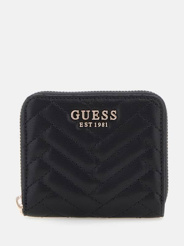 Buitenkant van doorgestikt kunstleer.Sluiting met rits.Licht-goudkleurige metalen onderdelen.Productfamilie: Anning.Intern muntenvak met knoop.Vakjes voor creditcards.Logo met metalen detail op de voorkant.