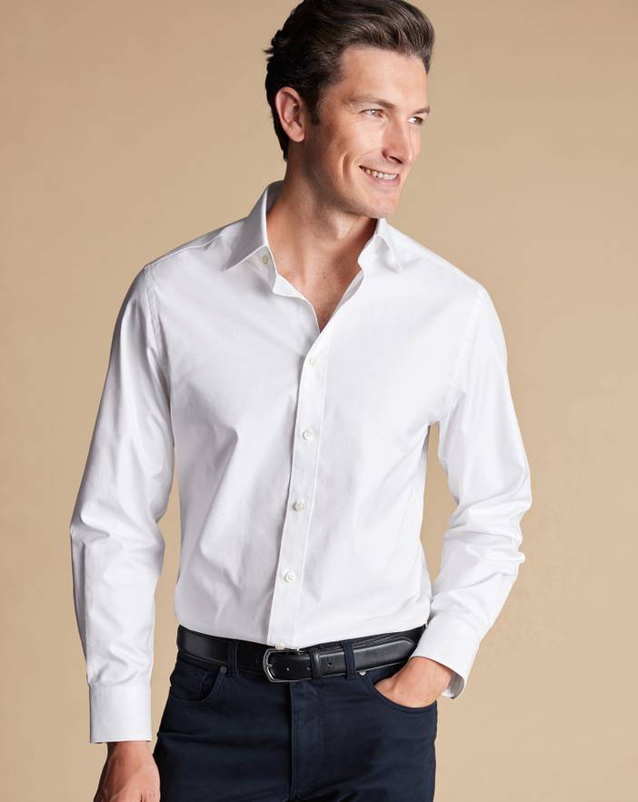 100% 2 Ply Egyptian cotton, Available in classic, slim and extra slim fit, Semi-spread collar, Classic and slim fit: back pleats, Extra slim fit: back darts, Rounded button cuff with two buttons or square french cuff, Machine washable - Luxury Twill Shirt - White - Luxury Twill Shirt - White | Men's Charles Tyrwhitt Luxury Twill Dress Shirt - White Single Cuff Size Medium Cotton