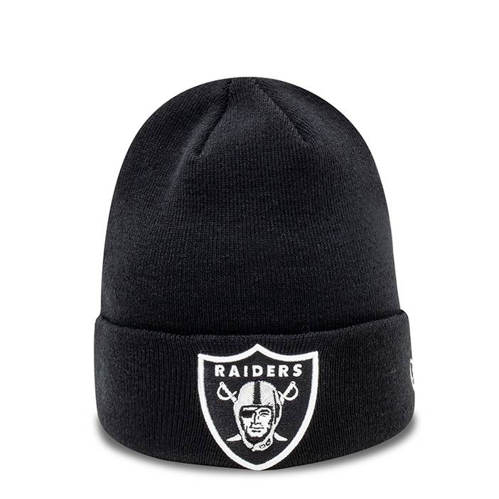 A Raider Nation classic, this knitted beanie hat is a great addition to any Las Vegas Raiders fan's wardrobe. Presented in all over black, the iconic Raiders logo sits proudly to the front, with the New Era flag completing the authentic look. Official NFL gear Knitted cuff hat All over black Raiders logo embroidered in white to front New Era flag embroidered in white to wearer's left 100% Acrylic Product ID: 12122722