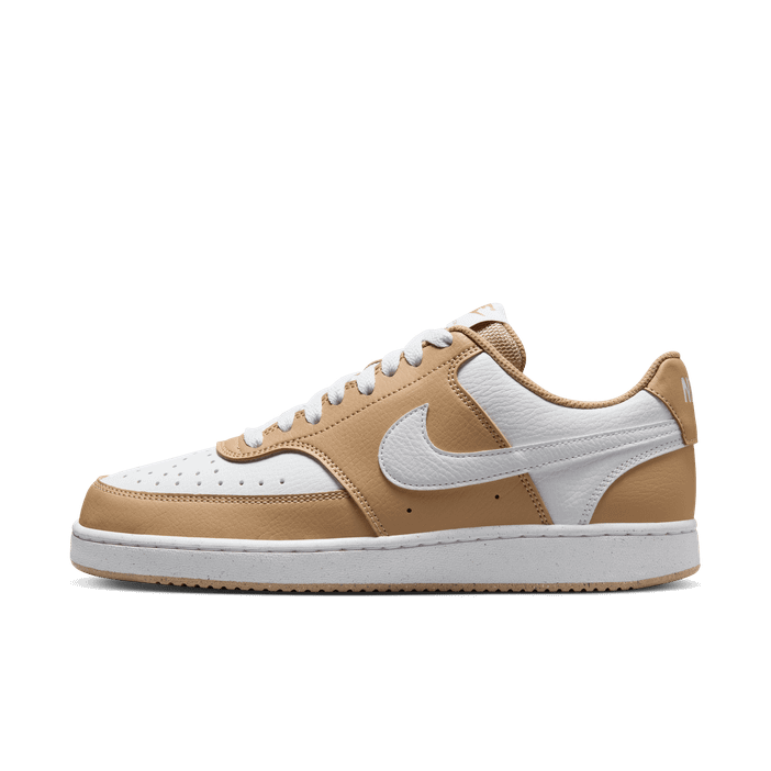 Du liebst den klassischen Look des Basketballs der 80er Jahre, magst aber auch die rasante Kultur des heutigen Spiels? Hier ist der Nike Court Vision Next Nature. Er besteht zu mindestens 20 % aus recycelten Materialien und verfügt über ein geschmeidiges Obermaterial sowie genähte Überzüge, die von Hook-Shots und langen Baumwollsocken inspiriert wurden. Der gepolsterte Schuhkragen und die Gummi-Außensohle sorgen für Tragekomfort und Traktion. Vorteile:Es besteht zu mindestens 20% (gemessen am Gewicht) aus Recyclingmaterialien.Der Nike Sunburst und der Name "Next Nature" (NN) stehen für einen weiteren Schritt in Richtung null CO2-Ausstoß und null Abfall.Das Design besticht mit Synthetik-Materialien, die an die Basketballschuhe der Mitte der 1980er Jahre erinnern.Der gepolsterte, niedrig geschnittene Schuhkragen sieht elegant aus und sorgt für ein tolles Tragegefühl. Perforationen an den Zehen und Seiten sorgen für Tragekomfort und Atmungsaktivität.Die vulkanisierte Konstruktion verbindet die Außensohle mit der Mittelsohle für einen optimierten Look und strapazierfähigen Tragekomfort.