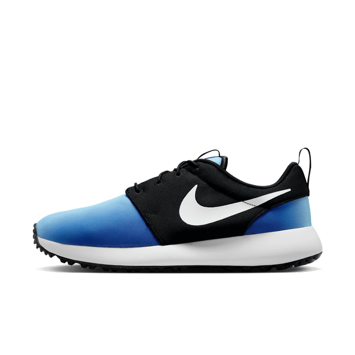 Wenn die Sonne auf deinen Rücken brennt und dein Drive gerade im Bunker gelandet ist, schau dir den Roshe 2 an, ein Design, das dir helfen kann, deine Mitte zu finden, wenn es beim Golfen nicht gut läuft. Er ist von Natur aus einfach und stylisch, atmungsaktiv und bequem und eignet sich ideal für das Spiel in den heißen Monaten. Das durchgehende Mesh-Obermaterial und die weiche, leichte Schaumstoff-Mittelsohle bilden eine gepolsterte Kombination, die dir selbst bei schlechten Spielen innere Ruhe gibt. Mit Nike Grind gefertigt:Siehst du die Farbspritzer auf der Außensohle? Das bedeutet sie besteht zu mindestens 8 % aus Nike Grind, einem Material, das aus Resten aus der Schuhherstellung gefertigt wurde.,Keine Spikes erforderlich:Das Design ohne Spikes mit integriertem Traktionsmuster erleichtert das Wechseln vom Gras auf dem Platz zu den Cart-Straßen und Parkplätzen aus Beton. Weitere Vorteile:Der Einsatz an der Zunge schützt vor Schmutz.Zuglaschen an Zunge und Ferse erleichtern das An- und Ausziehen des Schuhs.