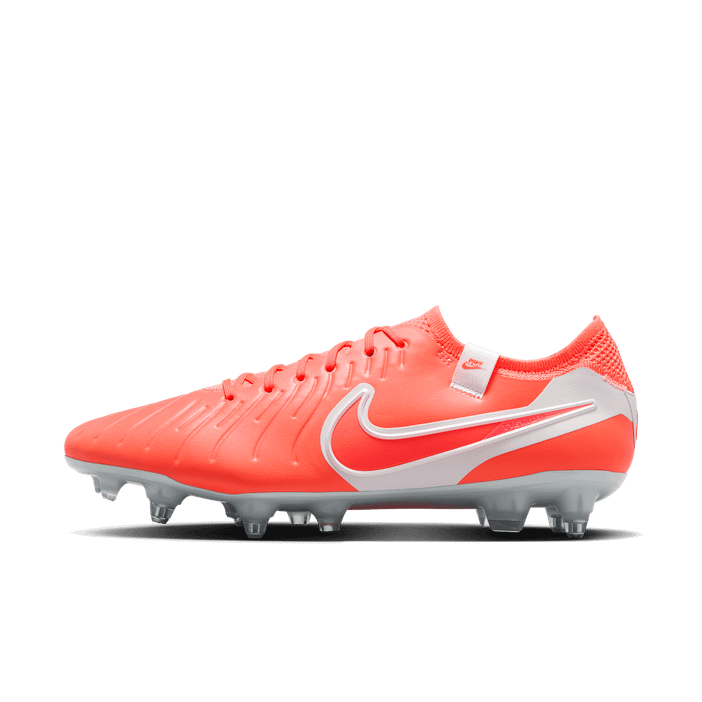 Sogar Legenden entwickeln sich weiter. Die neueste Version dieser Elite-Schuhe ist mit brandneuem, speziell entwickeltem FlyTouch Plus-Leder ausgestattet. Es ist weicher als natürliches Leder und passt sich deinem Fuß an. Die integrierte Technologie All Conditions Control bietet selbst bei nassem Wetter Grip, damit du das Tempo im Spiel bestimmen kannst. Der Legend 10 ist noch leichter und schnittiger als die bisherigen Tiempo-Modelle. Er eignet sich für jede Position auf dem Spielfeld, egal ob du einen präzisen Pass durch die Verteidigung spielst oder zurückläufst, um einen Gegenangriff abzuwehren. Diese Version verfügt über Anti-Clog-Traktion an der Sohlenplatte, um Schlammansammlungen zu verhindern. Noch besseres Ballgefühl:Siehst du die Microdots auf dem Obermaterial? Sie optimieren den Kontakt beim Schießen, Dribbeln und Passen. Außerdem sorgen sie für einen eleganteren Look und eine extra Polsterung ist nicht nötig. Hinzu kommt, dass sie nicht die Ballkontrolle beeinträchtigen, auf die es auf dem Spielfeld ankommt. Wir haben auch weniger Schaumstoff als beim Tiempo 9 verwendet, damit dein Fuß noch näher am Ball ist. Dafür sind die Stollen mit Konturen versehen. Die All Conditions Control-Technologie (ACC) ist mit ihrer griffigen Struktur ideal bei nassen und trockenen Bedingungen.,Natürliche, anschmiegsame Passform:Das speziell entwickelte FlyTouch Plus-Leder ist unglaublich weich. Dadurch passt sich der Schuh deinem Fuß an und sorgt so für Tragekomfort, ohne das Material auszuleiern. Flyknit im Knöchelbereich bietet ein sicheres Tragegefühl.,Traktion auf dem Spielfeld:Die Sohle verfügt über konische Stollen an der Ferse und sorgt so unter allen Bedingungen für optimale Traktion und Stabilität beim Abbremsen und bei Richtungswechsel.