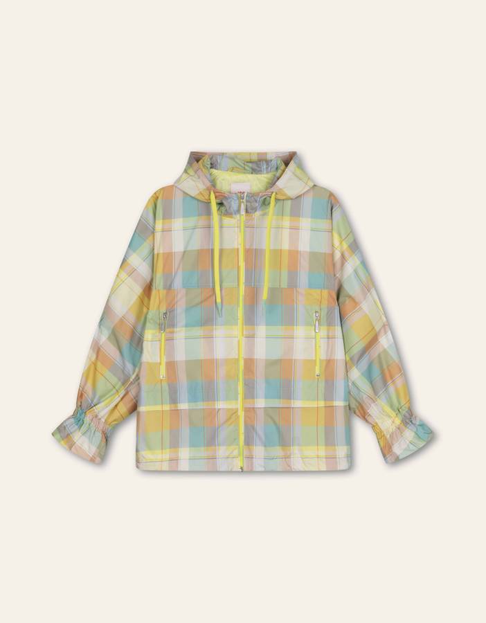 Een jas met een heerlijke zomerse ruit! De jas heeft elastiek bij de polsen, een capuchon met trekkoord en zijvakken met ritssluiting. - Let op: Dit item valt klein! - Ritssluiting - Zakken met ritssluiting - Capuchon