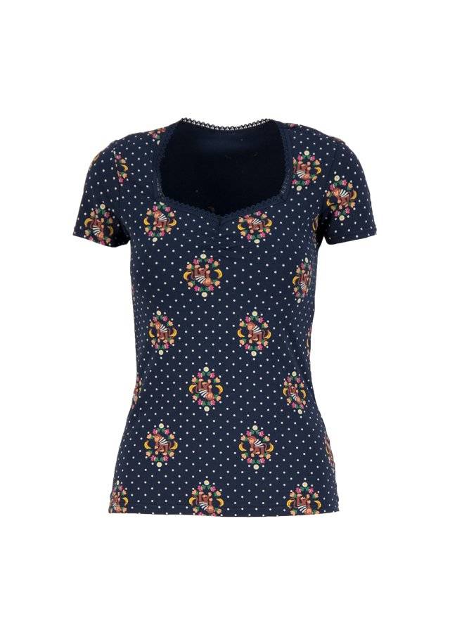 Figurbetontes T-Shirt aus anschmiegsamem Bio-Baumwoll-Jersey mit minimalem Stretch-Anteil für maximalen Wohlfühlkomfort. Der herzförmige Carré-Ausschnitt des bequemen Sommer-Shirts wurde mit einem farblich korrespondierendes Spitzenband entlang der Ausschnittkanten veredelt und zaubert so einen besonders hinreißenden Rahmen für jedes Dekolleté. Zarte Kräuselungen auf der Brust komplettieren den zarten Charakter des Shirts. Unser Wohlfühlversprechen: Der weiche und pflegeleichte Organic-Cotton-Stoff garantiert Dir ein angenehmes Tragegefühl auf der Haut und wird Dir tagtäglich Freude bereiten.