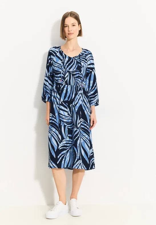 Das Tunika Kleid von CECIL für Damen ist ein bezauberndes Midikleid mit einem attraktiven Print und einem schmeichelhaften V-Ausschnitt, der durch einen Tunnelzug individuell angepasst werden kann. Die 3/4 Ärmel mit Bündchen verleihen dem Kleid eine elegante Note. Leicht tailliert geschnitten, betont es die Figur auf subtile Weise, während das Wellen Muster für einen modernen Look sorgt.
