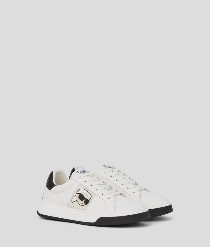 A stylish choice for active days, these IKON sneakers feature a low-top, lace-up design that ensures ease of wear. The contrasting heel counter proudly displays the KARL LAGERFELD logo, while a rubber badge adds a playful touch. A monochrome outsole completes the look.