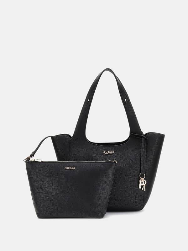 Außenseite aus Kunstleder.Verschluss mit Knopf.Metallbestandteile hellgoldfarben.Produktfamilie: HelinaInnenpochette mit Reißverschluss.Logoschriftzug aus Metall an der Vorderseite.