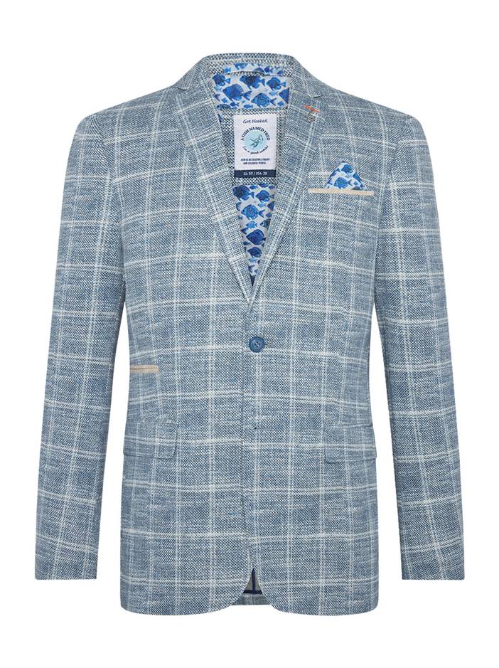 A Fish Named Fred Cotton-Poly Pique Blazer Step up your style game with A Fish Named Fred's Cotton-Poly Pique Blazer. Made from a comfy mix of 54% cotton and 46% polyester, this blazer has a cool, lightly textured feel. Inside, there's a fun printed lining that matches with one of our special shirts. It's perfect for dressing up or adding a smart touch to your favorite jeans. Wear it to work or out for dinner, and enjoy looking sharp with a twist of fun.