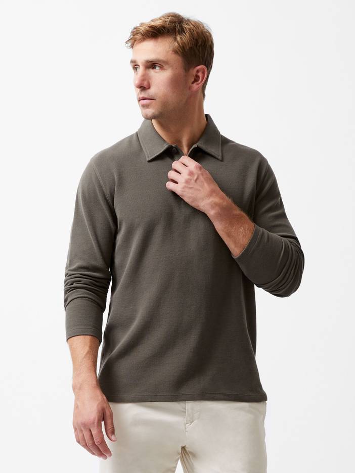 Conquer those smart-casual dress codes with the help of our Long Sleeve Buttoned Polo Shirt. This long sleeved polo shirt blends smart tailoring with laidback comfort, featuring a structured collar, buttoned placket and refined textured finish. Polo shirt Fabric: cotton, textured finish, green Long sleeves Pointed collar Branded neck tape Buttoned placket with branded buttons Rubberised FC logo at hem Size S length is 72cm Our model is 6ft and wearing a Size S Style code - 56YAW