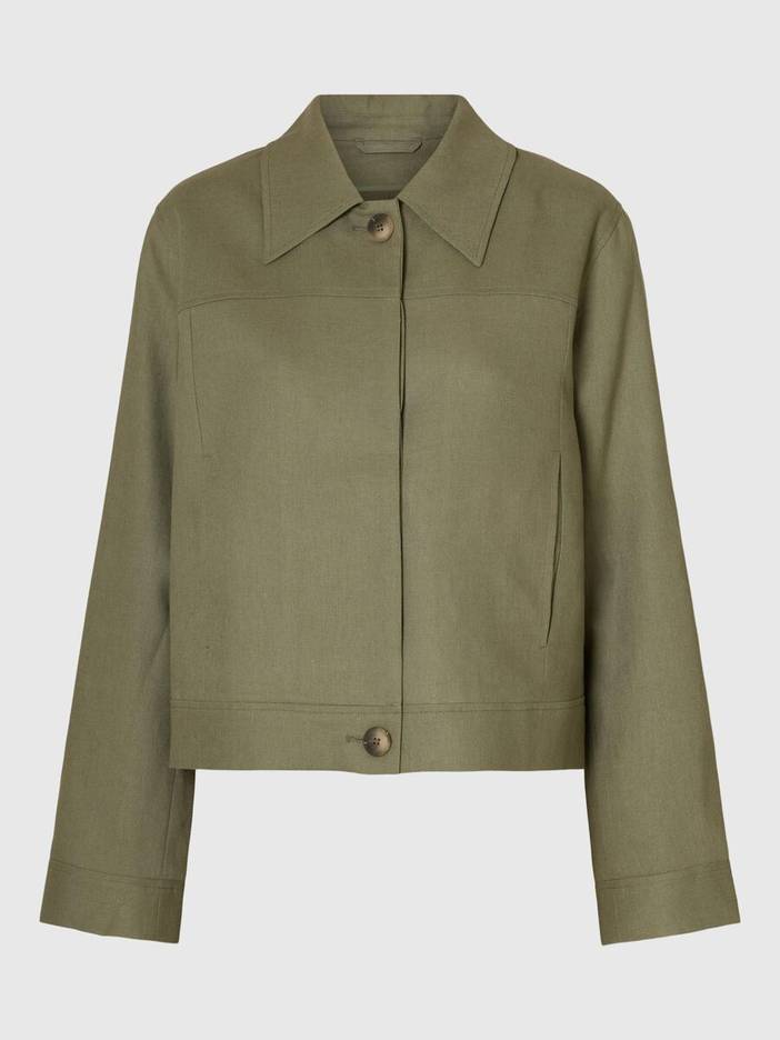 Maak je lentelook compleet met dit korte linnen jack. Het heeft een prachtig eenvoudig design en ziet er te gek uit boven een straight-leg jeans ribtop en witte leren sneakers. - Grote kraag - Blinde sluiting aan de voorkant - Knoop boven en onder - Lange mouwen - Zijzakken - Regular fit