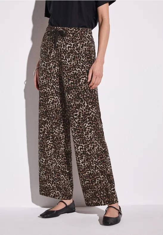 Die Hose im Style Emee von Street One begeistert mit einem lockeren Loose Fit und einer High Waist für eine moderne Silhouette. Die weichen Wide Legs und der elastische Bund mit Tunnelzug bieten höchsten Komfort, während die seitlichen Taschen das Design alltagstauglich machen. Die weiche Viskose und das auffällige Muster machen sie zu einem stilvollen Highlight.
