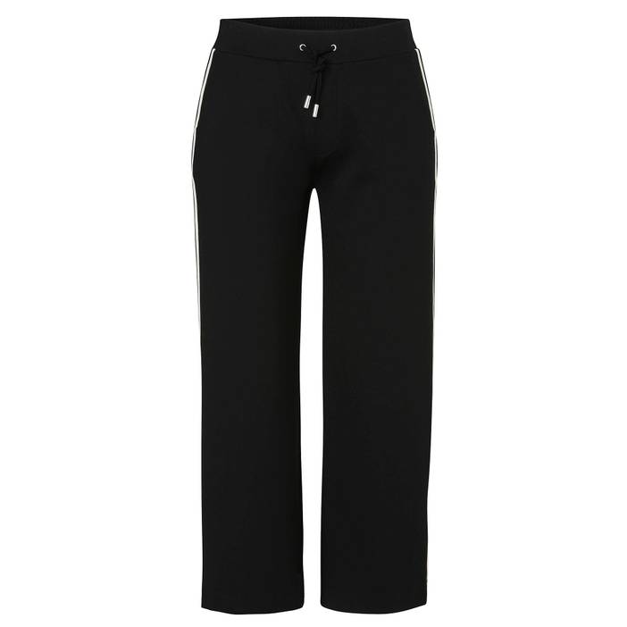 Moderne Schlupfhose mit weiten Beinen im trendigen Jogg-Pants-Style mit seitlichen Streifen. Die Hose ist bequem und wirkt edel durch die feine Viskosemix-Qualität mit Stretchanteil.