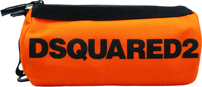 The Dsquared2 Beauty Case Da Uomo is a high-end accessory designed for women, offering a vibrant, eye-catching orange hue. It features a sleek, rectangular silhouette that provides a modern edge. "DSQUARED2"" is prominently displayed in bold black letters, enhancing its urban appeal. The top zipper closure with black trim adds a contemporary touch. This compact yet spacious bag is ideal for carrying essentials with style."