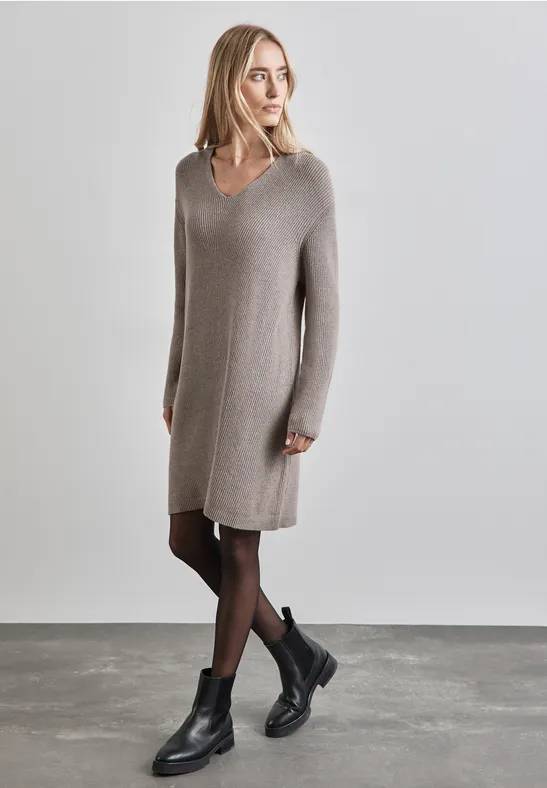 La robe en tricot de Street One pour femmes est un complément idéal pour ta garde-robe. L'encolure en V et la fine structure tricotée confèrent à la robe une touche féminine. Le doux mélange de viscose rend cette robe longue au genou particulièrement agréable à porter.