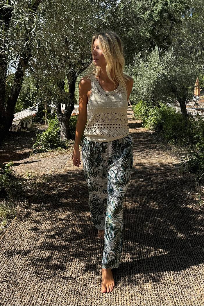 Pantalon fluide à imprimé tropical