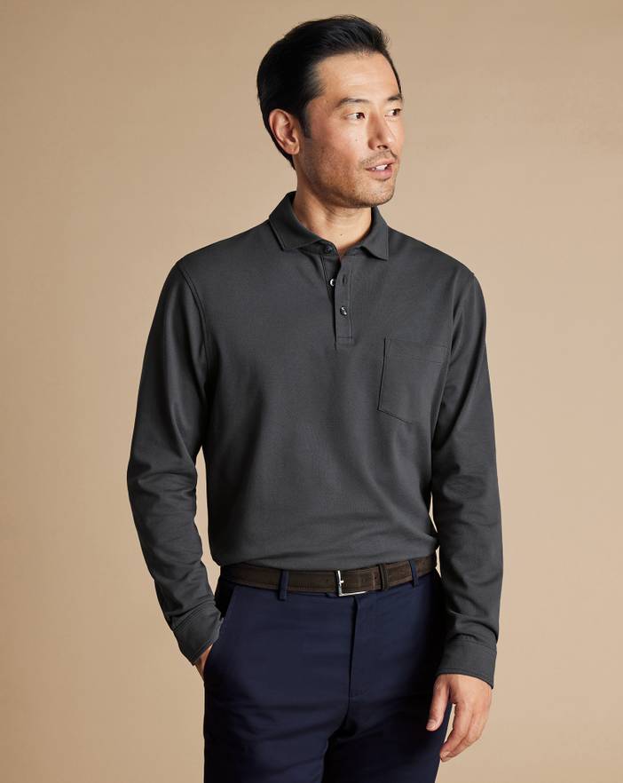 Long Sleeve Pique Polo - Black | Men's Charles Tyrwhitt Long Sleeve Pique Polo Shirt - Black Size Large Cotton