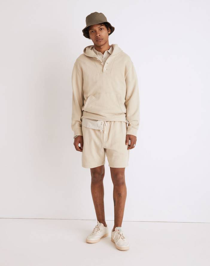 Cotton-Hemp Terry Henley Hoodie Sweatshirt