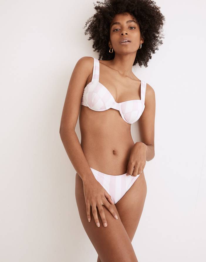 Founded on a beachy stretch of the Hamptons, Solid & Striped bathing suits are made of high-quality fabrics in shapes made to last. Their claim to fame? Timeless, oh-so-sexy swimwear like this low-rise bikini bottom in retro pink stripes (complete the two-piece with the matching top). Minimal coverage: low waist, a little cheeky.Nylon/elastane.Hand wash.Import.Madewell.com only.