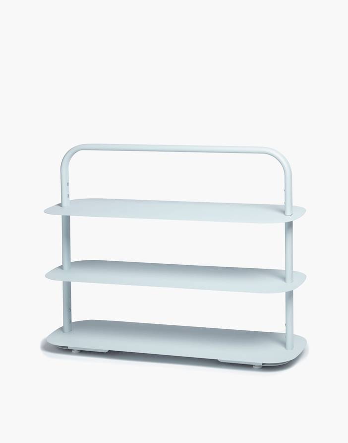 Proof that home organization can be cool, Pattern's family of brands has sleek designs that are the perfect marriage of form and function. Tidy up your space with this multi-use, three-tier rack that's perfect for that shoes-off-indoors lifestyle (but can also be used to display plants, books and art). Assembly required; allen wrench and screws included.33 3/4"L x 12 1/2"W x 26 1/12"H (7 1/2"H between shelves).Individual shelf capacity: 22 lbs.Steel.Wipe clean with a dry or damp cloth.Import.This description was written by Pattern Brands.