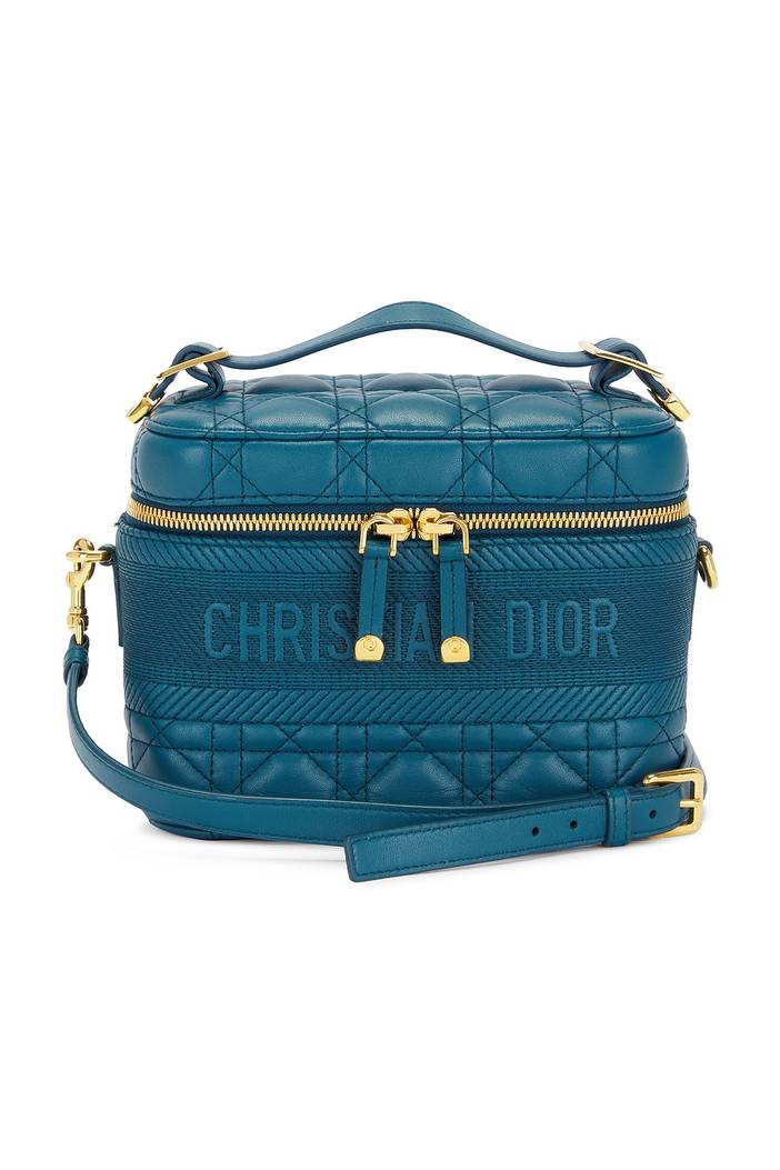 dior UMHÄNGETASCHE DIOR in Blau - Blue. Size all. Quilted lambskin exterior with suede lining and gold-tone hardware. Hergestellt in Italien. Rundum-Reißverschluss. Einzelnes Hauptfach. Zwei Einschubfächer innen. Detachable leather top handle and shoulder strapEmbroidered panel with Dior logo at front. Original dustbag and authenticity card included. Maße ca. 18 cm x 13 cm x 10 cm (BxHxT)Ca. 53 cm hoher SchulterriemenCa. 5 cm hoher Henkel. Gut. Very minor loss of shape. Leichte Falten am Leder des Riemens. Ohne Originalkarton der Marke und Anhänger. About the designer: