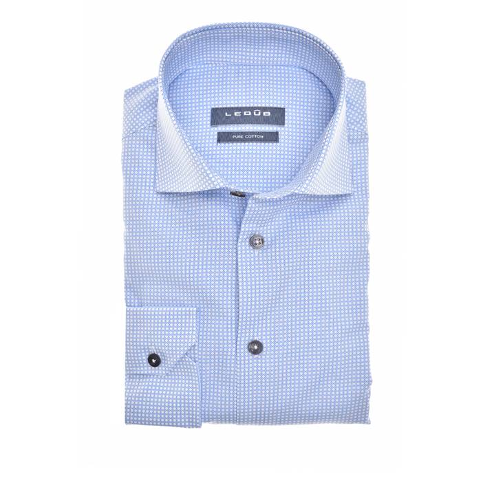 Dit lichtblauw modern fit overhemd is gemaakt in een 100% katoenen kwaliteit en heeft extra lange mouwen. Ledûb modern fit overhemden zijn licht getailleerd waardoor deze een ruim pasbereik hebben. De katoenen kwaliteit van de stof geeft je luchtig draagcomfort. De print op dit overhemd is een echte kameleon en zet er vanuit elke hoek anders uit. Het overhemd heeft een eigentijdse wide spread boord waarbij de punten van de boord naar de zijkant zijn gesneden. Eigen productie in Europa | Gratis verzenden vanaf €99,95 | Gratis retourneren binnen 14 dagen | Op ma - vr voor 16.00 uur besteld, dezelfde dag verzonden.