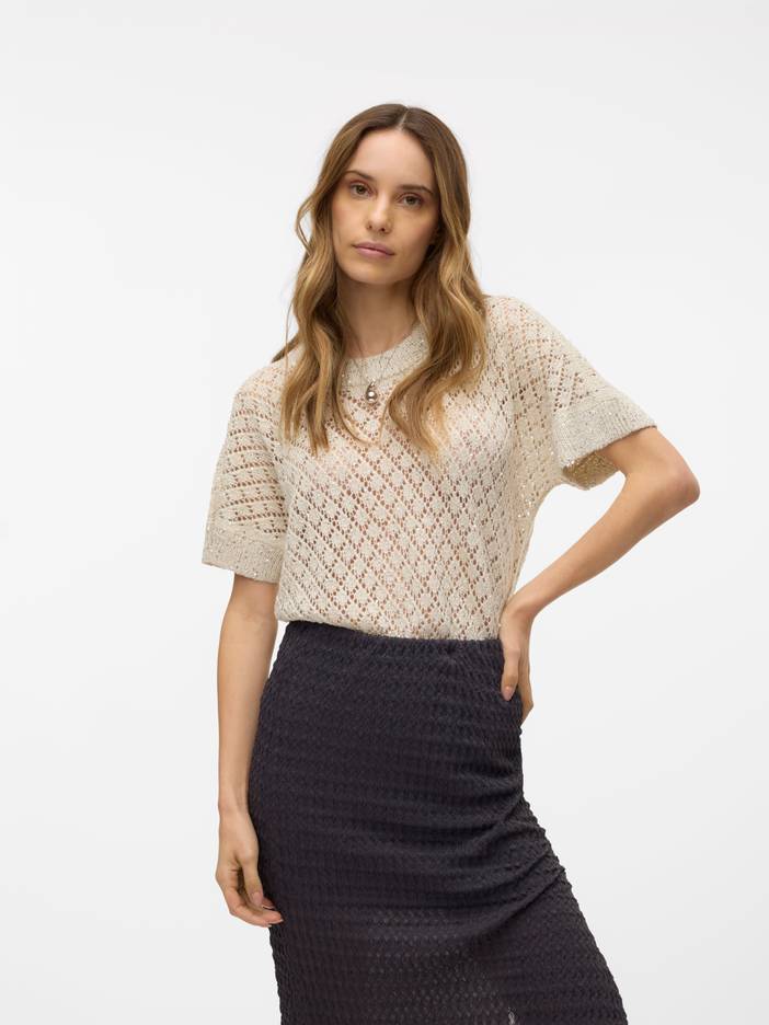 Geen enkele garderobe is compleet zonder je favoriete trui, en dit zou wel eens je nieuwe favoriet kunnen worden. De perfecte manier om warm, stijlvol én comfortabel te blijven. Pure perfectie!. - Producttype : Gebreide pullover - Neck : O-hals - Mouw : Korte mouwen - Details : Pailletten detail