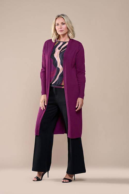 Lang, dark berry vest met strikceintuurHet Celine vest in de kleur dark berry is een stijlvol en comfortabel langgebreid vest met verfijnde designerdetails. Dit elegante ontwerp valt losjes om het lichaam en reikt tot net boven de kuit, wat zorgt voor een flatterend silhouet en een behaaglijke uitstraling. Dankzij de afneembare strikceintuur kun je eenvoudig de taille accentueren, wat het vest een vrouwelijke en elegante pasvorm geeft. De mouwen en het rugpand zijn voorzien van een subtiel ingebreid driehoekig motief, wat zorgt voor een speelse twist binnen het tijdloze ontwerp. Het paarse vest is vervaardigd van een hoogwaardige mix van 70% viscose en 30% nylon. Deze samenstelling zorgt voor een zijdezachte touch, veel draagcomfort en een soepele valling. De stof beweegt moeiteloos met je mee en voelt prettig aan op de huid. De diepe, warme kleur dark berry geeft het vest een moderne, vrouwelijke uitstraling. Het is een kleur die direct opvalt, maar toch makkelijk te combineren is met zowel neutrale tinten als gedurfde prints. Of je nu kiest voor ton-sur-ton in berrykleuren of juist voor een contrasterende combinatie met zwart, wit of beige: dit vest voegt altijd een stijlvolle laag toe aan je look.Combineer eindeloos voor elke gelegenheidHet Celine vest in dark berry laat zich perfect stylen voor verschillende momenten. Draag het bijvoorbeeld over de bijpassende Cherbrough trui in dark berry met de Torya broek voor een elegante monochrome outfit. Voor een speelse touch combineer je het vest met een kleurrijk tuniek en een zwarte legging. Ook met een klassieke witte blouse, zoals de Amira blouse, creëer je een chique en vrouwelijke look. Of je nu gaat voor casual, zakelijk of gekleed: dit vest past zich moeiteloos aan jouw stijl en de gelegenheid aan.Comfortabele vesten van Mart VisserDe vestencollectie van Mart Visser bestaat uit comfortabele en elegante ontwerpen in rijke kleuren zoals bruin en dark berry. Deze lange gebreide vesten combineren luxe met draaggemak en kunnen seizoen na seizoen gedragen worden. Dankzij de hoogwaardige materialen en het tijdloze design zijn ze een waardevolle aanvulling op iedere garderobe. Draag ze over een jurk, met een jeans of op een pantalon en geef je outfit direct een warme, stijlvolle boost. Met het Celine vest in dark berry kies je voor karakter, klasse en comfort, elke dag opnieuw. Mart Visser damesmode: altijd een elegante look, van kleine tot grote matenDe collectie van Mart Visser is verkrijgbaar in een uitgebreide maatrange: van maat 36 tot en met maat 50. Wij vinden het belangrijk dat ook plus size fashion perfect valt en de mooie kanten van vrouwen benadrukt. Daarom besteden we extra zorg aan de belijning, pasvorm en materiaalkeuze. Of je nu op zoek bent naar kleine of grote maten; de dameskleding van Mart Visser geeft je altijd een goed gevoel.